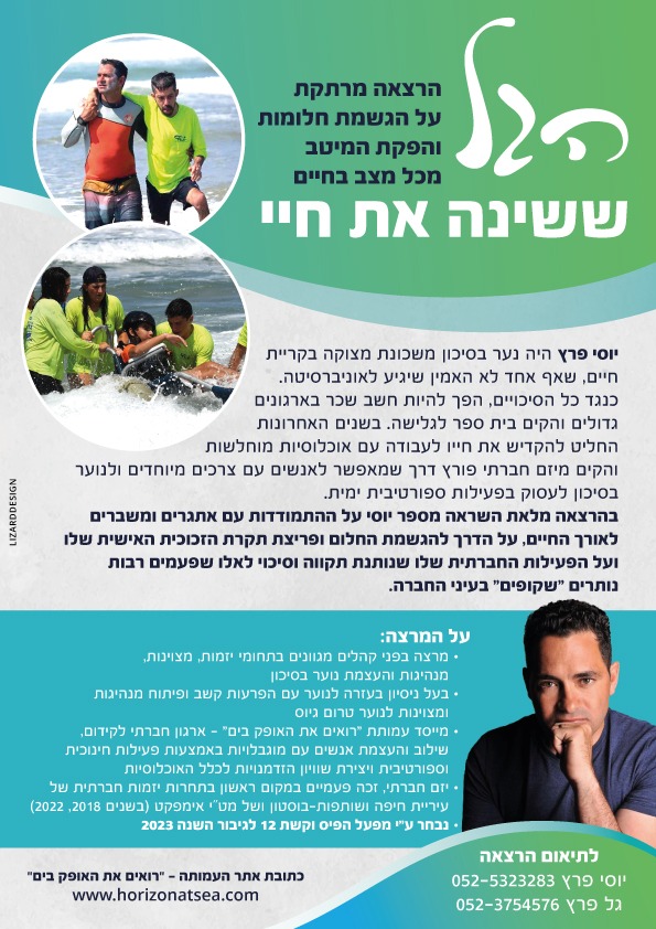 - סיפור חיים שהוביל לפתיחת בית הספר לגלישה והעברת דרך החיים הזו כמשל לחיים .
